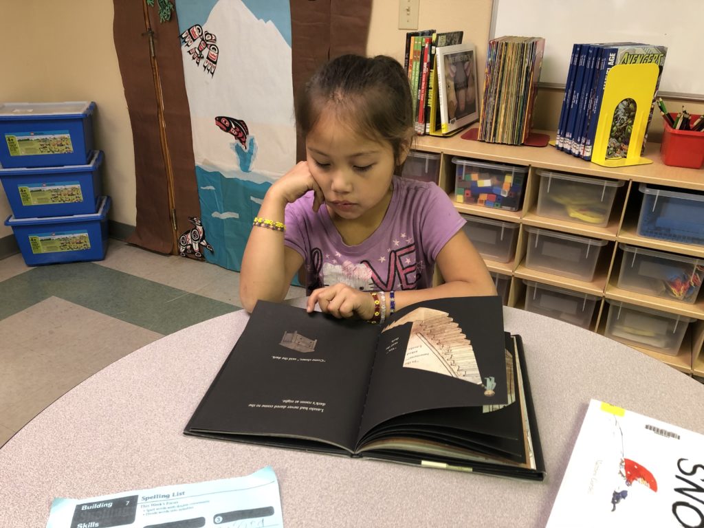 The library opened at the Timber Ridge site in fall 2019. It is a hub for Youth Program participants to get homework help, learn, play, and read. The children’s room includes access to computers, audiobooks, and fun bean bag chairs. The library also has dedicated sections for adult visitors and Elders.