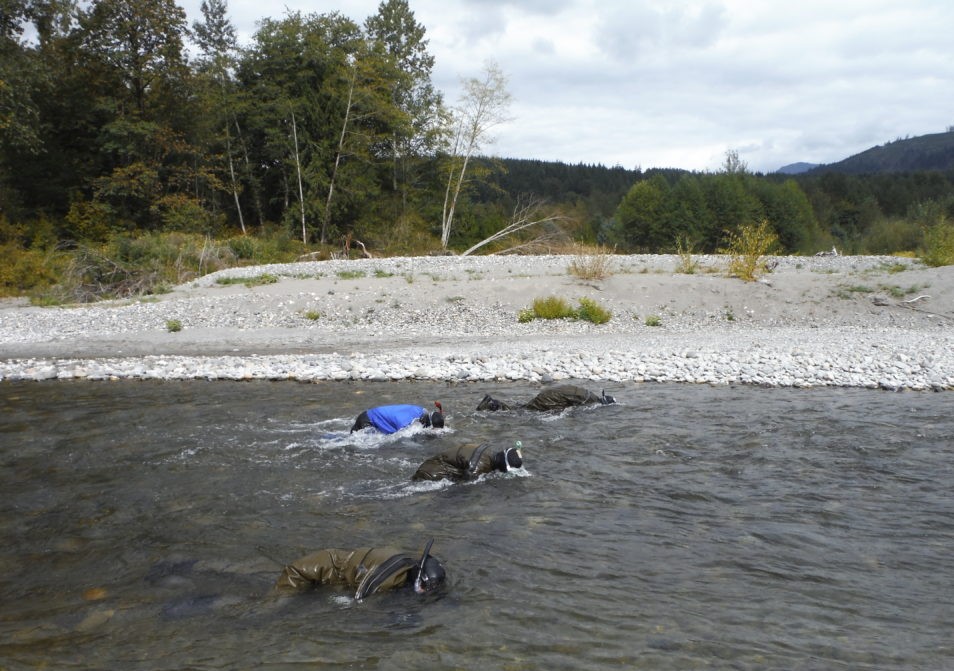 The lower SFNR provides habitat for all Pacific salmonid species, including spring and fall Chinook salmon, coho salmon, pink salmon, chum salmon, sockeye salmon, steelhead, bull trout, and cutthroat trout. South Fork (SF) Nooksack early chinook is an independent population of the threatened Puget Sound Chinook Evolutionarily Significant Unit that is essential for recovery. Chinook spawn upstream to the anadromous barrier at RM 31, although Sylvester’s Falls at RM 25 constitutes a partial blockage, and in larger tributaries to the South Fork. The abundance of both early Chinook salmon populations (North Fork/Middle Fork early Chinook salmon, South Fork Nooksack early Chinook salmon) is critically low, on the order of dozens to a few hundred natural-origin spawners for each population. A report by the US Commission of Fish and Fisheries on Fisheries of the West Coast that includes 1895 Nooksack River catch data estimates that nearly 25,000 Chinook inhabited the Nooksack River at that time. The populations comprise two of 22 independent populations in the Puget Sound Chinook Salmon Evolutionarily Significant Units (ESU), which are listed as threatened under the Endangered Species Act (ESA). Nooksack early chinook (including both the SFNR and the North/Middle Fork populations) is the highest priority species, although restoration of Chinook habitat is expected to yield collateral benefits to other species. Nooksack spring Chinook salmon hold great cultural and subsistence importance to the Nooksack Tribe and Lummi Nation.