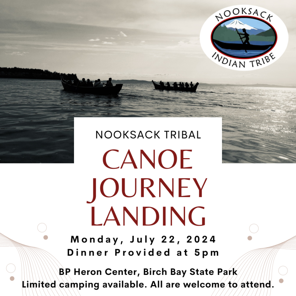 Come and join us for Nooksack’s Birch Bay Canoe Journey Landing at Birch Bay State Park BP Heron Center.