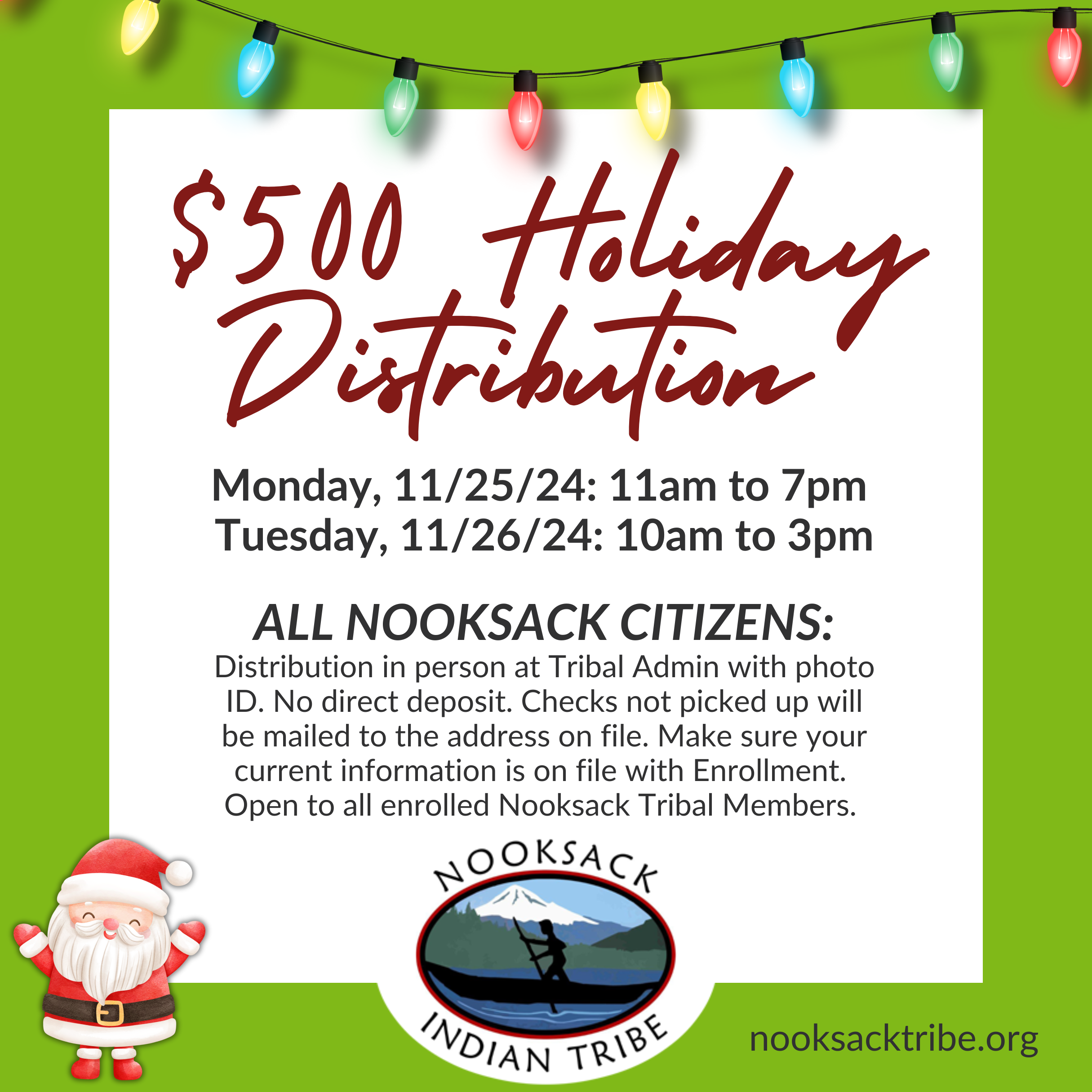 The Nooksack Tribe is proudly hosting a Veterans Day Dinner on Monday, November 11th at 5pm at the Mi’sq’eq’o Community Building. We will have gifts for our Veterans. This event is open to all.