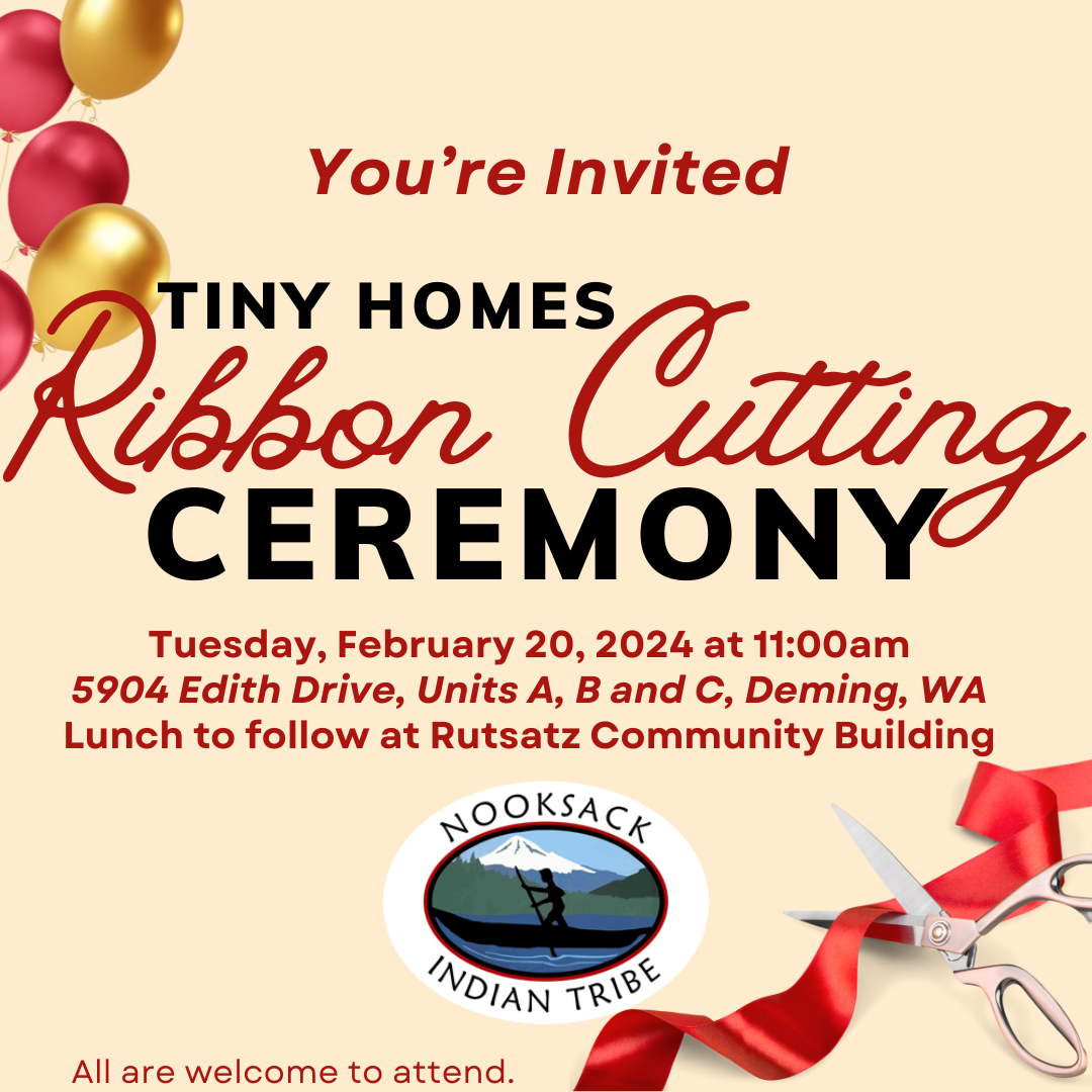 Tiny Homes Ribbon Cutting Ceremony – Tuesday, February 20 at 11am Posted February 16, 2024By Abby Yates Uncategorized Tuesday, February 20 at 11am – 5904 Edith Drive, Units A, B and C, Deming, WA. Lunch to follow at Rutsatz Community Building. All are welcome to attend.